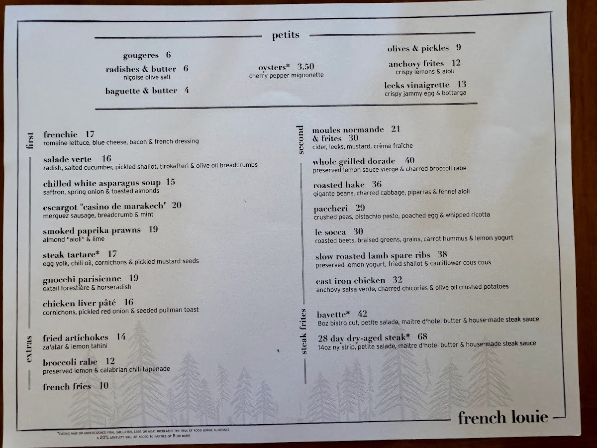 Welcome to French Louie, a charming eatery nestled on 320 Atlantic Ave, Brooklyn. This modern bistro seamlessly marries elegance with rustic warmth, offering a cozy yet sophisticated dining experience. The restaurant glimmers with delightful menu highlights, such as the renowned Sardines and Slow Roasted Lamb Ribs, as well as the irresistibly decadent Banana Foster Profiterole. Guests, like Kathy Cheng and Ryan Waggoner, rave about the vibrant atmosphere and attentive service, noting that every dish crafted here feels like a labor of love.